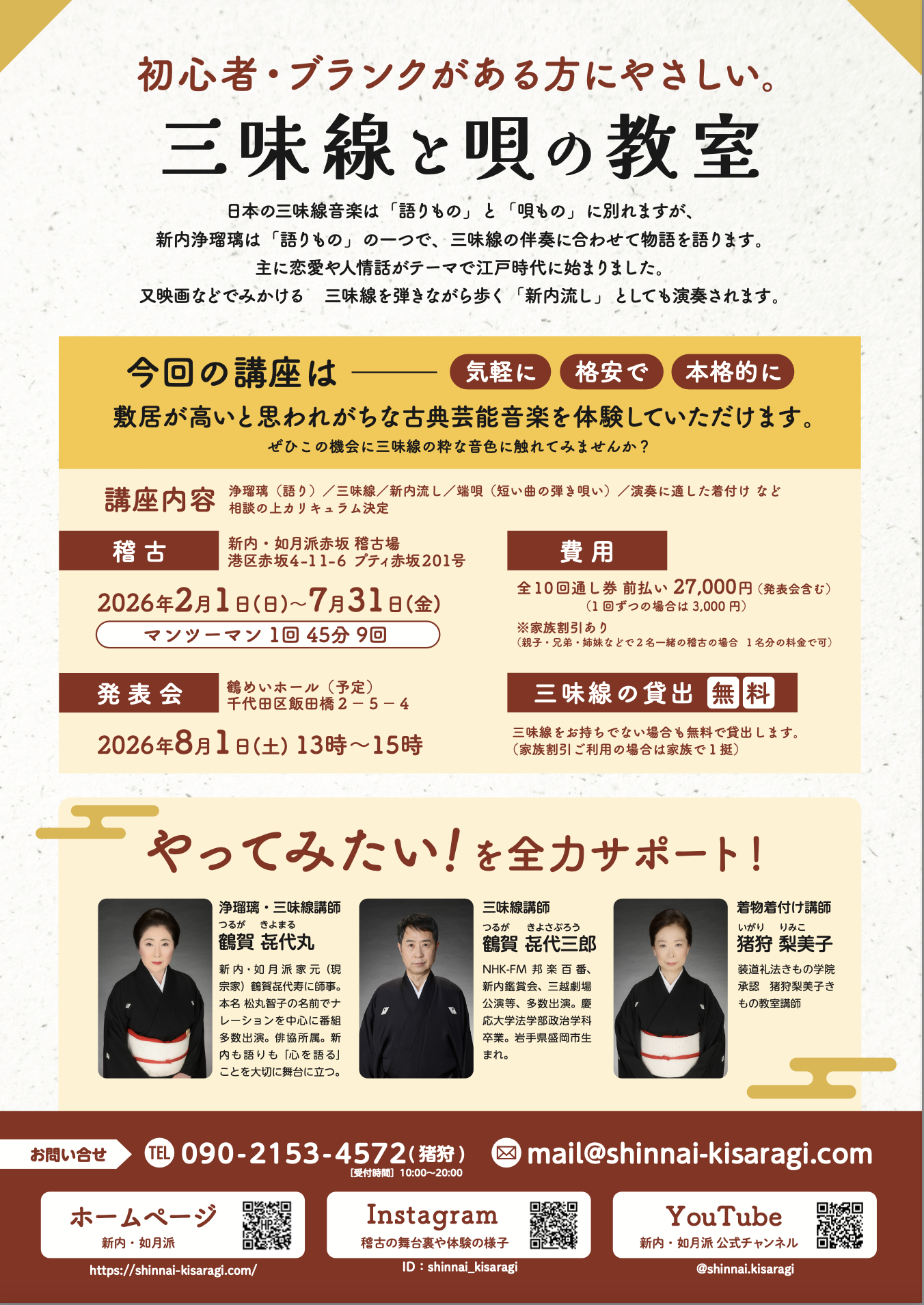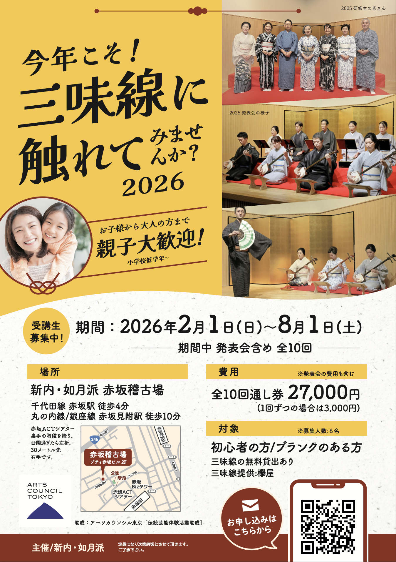 三味線や講座の雰囲気を気軽に体験していただけます。